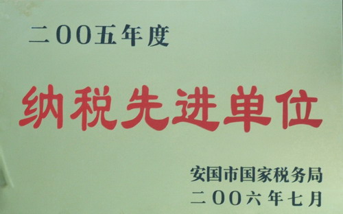 2006年7月,我公司被安國(guó)市國(guó)家稅務(wù)局認(rèn)定為2005年度納稅先進(jìn)單位。