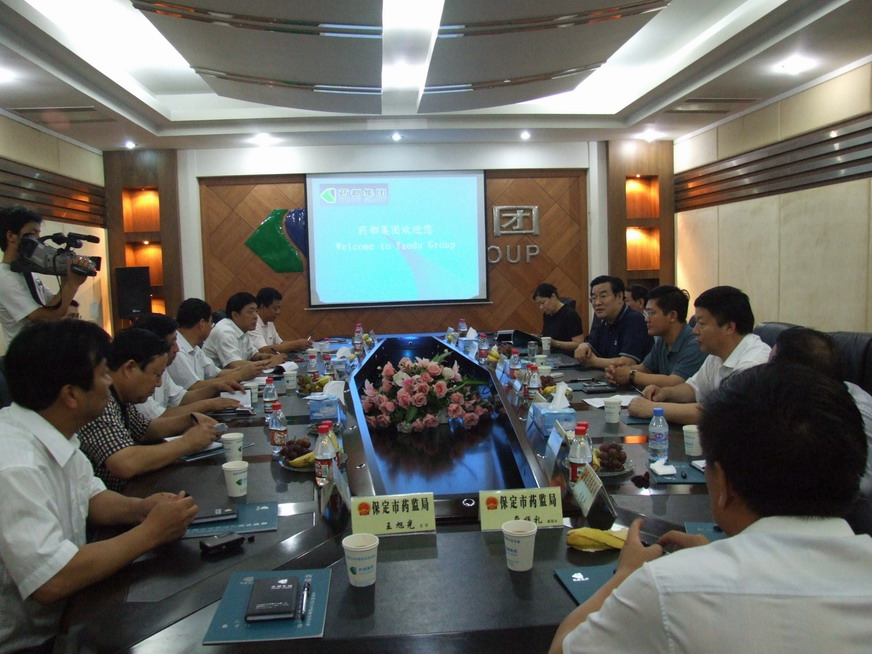 2008年7月19日,河北省食品藥品監(jiān)管局局長高金浩、副局長趙瑜帶領(lǐng)省局有關(guān)業(yè)務(wù)處領(lǐng)導(dǎo)在保定市副市長孟祥偉、保定市藥監(jiān)局局長徐順通及相關(guān)副局長及安國市市長張賀良、副市長張彥安等安國市相關(guān)部門領(lǐng)導(dǎo)的陪同下,來我公司進(jìn)行調(diào)研工作。公司董事長李曉恩、李玲副總、邢志莊總工、董少杰副總等公司領(lǐng)導(dǎo)在辦公樓前熱情的迎接了省局領(lǐng)導(dǎo),并陪同高金浩局長一行分別參觀了產(chǎn)品展廳、中藥材標(biāo)本室和化驗(yàn)室。在公司小會(huì)議室,高金浩局長一行觀看了我公司制作的企業(yè)簡介、中藥材標(biāo)準(zhǔn)化種植、新藥研發(fā)、藥都集團(tuán)北泡工業(yè)園區(qū)項(xiàng)目建設(shè)情況等幻燈片,在此基礎(chǔ)上,李曉恩董事長就公司發(fā)展的整體情況作了全面系統(tǒng)的匯報(bào),并圍繞項(xiàng)目建設(shè)及產(chǎn)業(yè)政策談了自己的看法,張彥安副市長代表安國市政府匯報(bào)了安國藥業(yè)發(fā)展的情況。圍繞張彥安副市長和李曉恩董事長的匯報(bào),與會(huì)人員紛紛發(fā)表了自己的意見,在與會(huì)人員發(fā)表意見的基礎(chǔ)上,高金浩局長作了總結(jié)性發(fā)言,并就藥都集團(tuán)發(fā)展方向提出了原則性意見,具有較強(qiáng)的前瞻性和指導(dǎo)性。