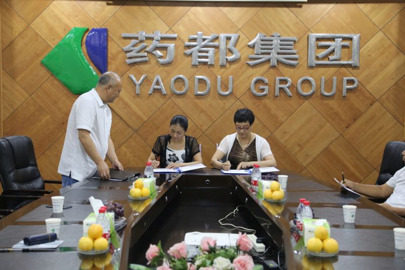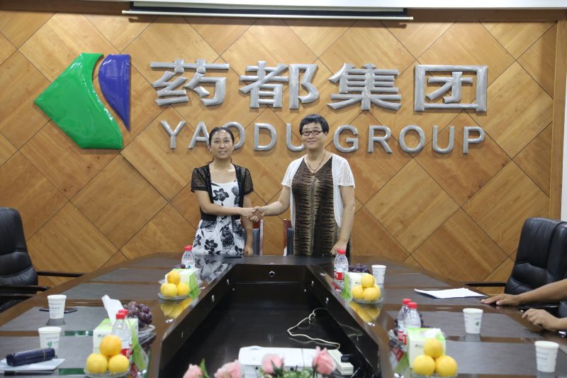 2017年8月6日上午10:00,藥都集團(tuán)與河北大學(xué)藥學(xué)院簽約儀式順利召開,藥都集團(tuán)董事長李曉恩與河北大學(xué)藥學(xué)院院長趙燕燕出席簽約儀式。